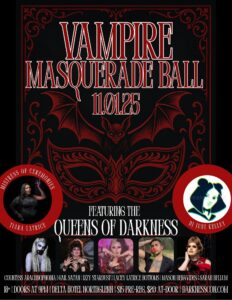 Saturday Night: The 2nd Annual Vampire Ball rises at 9PM and won’t stop until at least 2AM (if not later), with the Queens of Darkness performing all night long.